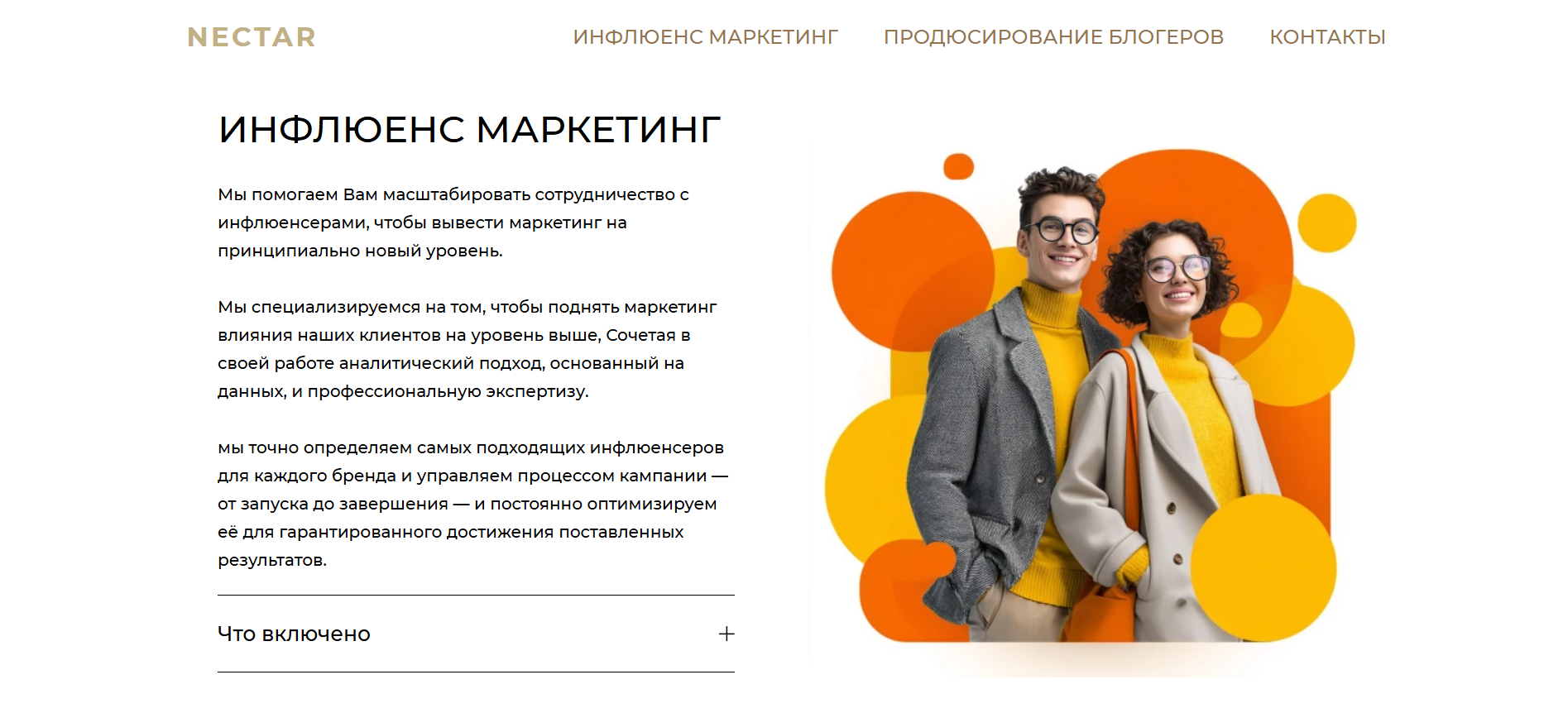 Мы специализируемся на том, чтобы поднять маркетинг влияния наших клиентов на уровень выше, Сочетая в своей работе аналитический подход, основанный на данных, и профессиональную экспертизу.